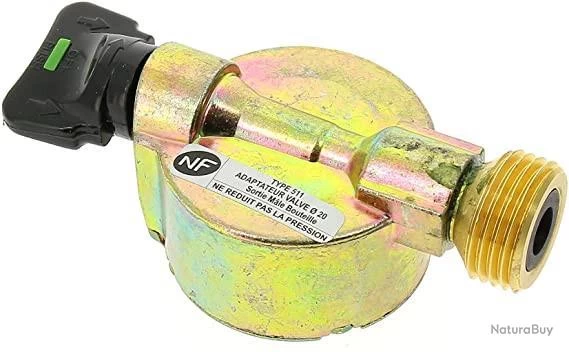 Adaptateur type 511 pour valve automatique Ø 20. Sortie filetée Ø 21,7 x 1,814 gauche, pour bouteilles : TWINNY, ELFY, MALICE, CLAIRGAZ.