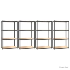 Étagères à 4 Niveaux 4pcs Anthracite Acier Et Bois D’ingénierie