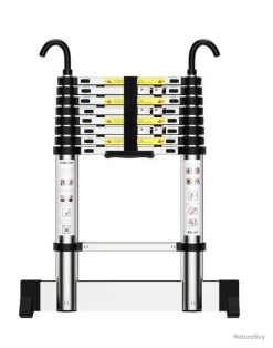 Échelle Télescopique 2.60M Compact Avec Crochets En Alu Max 150KG Bricolage Maison Jardin Forêt