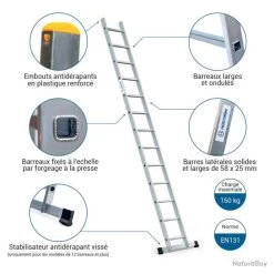 Echelle Simple StablePro 13 Marches En Aluminium, Légère Et Durable, Hauteur De Travail Maximale 4,4