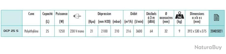 Sidamo – Aspirateur cuve polyéthylène 1250 W 25 L – DCP 25 S