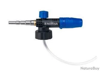 Le canon a mousse Vario, s’adapte parfaitement sur les bidons Nilfisk 2,5L et se raccorde simplement au pistolet des nettoyeurs haute pression Nilfisk listés ci-dessous
