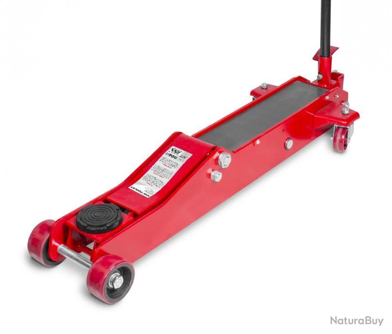 Cric rouleur extra long et basd’une capacité de 3 tonnes. Caractéristiques : Grâce à sonlong châssis, ce cric d’atelier robuste est particulièrement adapté auxvéhicules plus larges et plus grands, comme les camionnettes, les SUV, les minibus, les camping-cars, etc. Un cric ordinaire n’a pas une portée suffisante pour lever ces véhicules en toute sécurité Pédale quick liftpermettant d’amener le cric contre le châssis du véhicule en seulement quelques coups de pompe. Ceci est particulièrement utile pour les véhicules avec une grande hauteur de châssis, le temps de travail est sensiblement diminué Grandesrouessilencieuses avecrevêtement PU, qui conviennent également pour les sols de garage en époxy Bouchon en caoutchouc pour protéger la carosserie et travailler en toute sécurité