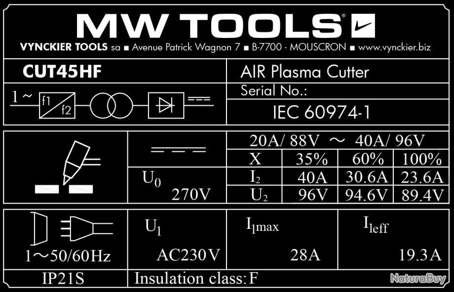 Découpeur Plasma Portable 45 A MW-Tools CUT45HF