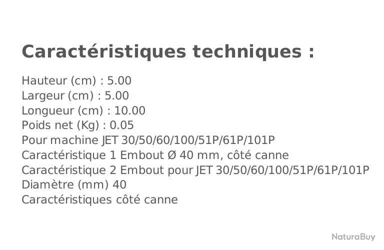 Embout de flexible D. 40 côté canne pour aspirateurs JET30 I, JET30 I SYNCHRO, JET 30I DR, JET50I, JET60I, JET60I DR, JET60 IRE, JET100I, JET100 I90, JET50P, JET60P, JET 100P, JET30 et JET60.