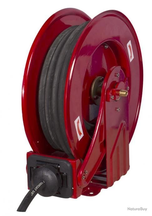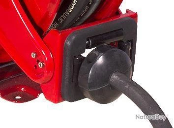 Enrouleur automatique pour huilejusqu’à150 bars. Avantages : Bras de sortie du tuyau orientable à 180° Embout guide-tuyau sur 4 galets, pour réduire l’usure du tuyau Blocage du tuyau à la longeur souhaitée Caractéristiques : Tambour solide en acier inoxydable, laqué résistant aux UV Tuyau fabriqué en caoutchouc NBR renforcé avec des fibres de lin Ressort fiable avec une longue durée de vie Joints en laiton de qualité supérieure L’enrouleur peut être fixé au mur, au sol ou au plafond, grâce à son bras réglable