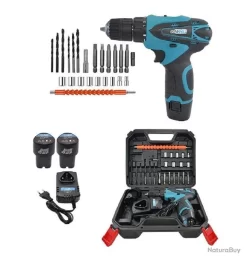 Visseuse Perceuse Sans Fil 12V 2 Batterie Lithium Mandrin Auto-Serrant 10mm Chargeur 24 Accessoires