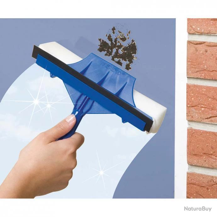 Le revêtement en microfibres (lavable à 30°C) allié à la raclette en caoutchouc permet dobtenir facilement un résultat impeccable, même avec de leau sans produit chimique.