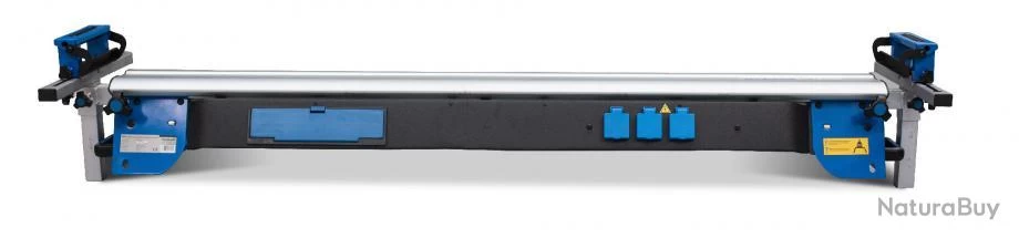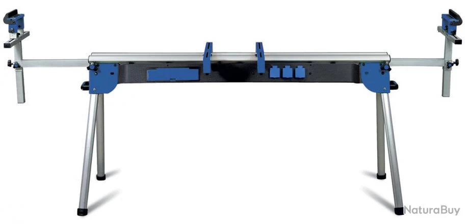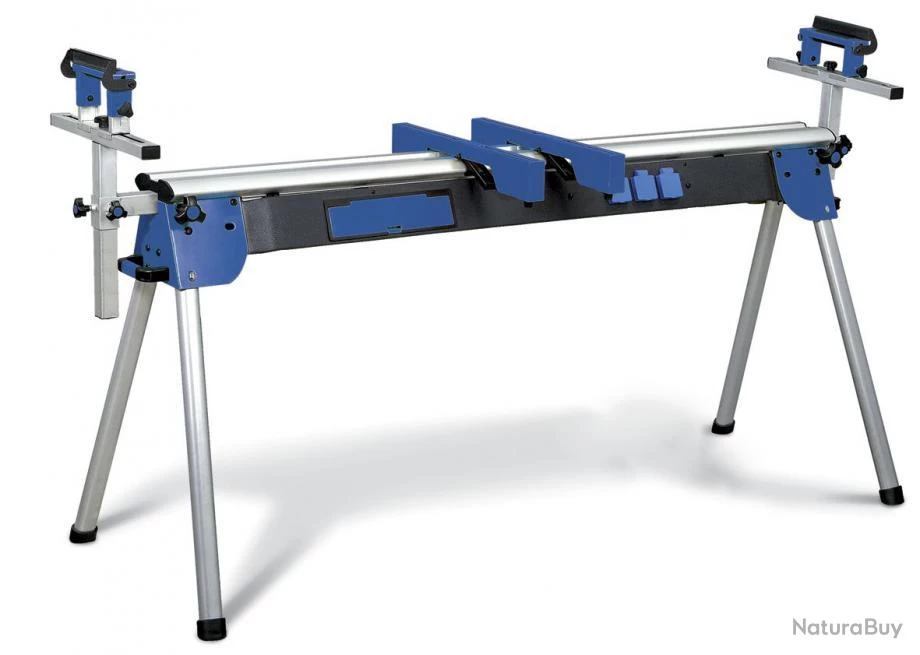 établi universel et convoyeur à rouleaux. Cet établi est mobile, extensible, pliable et multifonctionnel avec système de serrage rapide. Avantages: Construction solide en acier-aluminium Montage rapide sans outils Gain de place grâce aux pieds rabattables Rouleaux réglables en hauteur De chaque côté, bras extensiblejusque 2400 mm Avec3 prises 230 V intégréesdu côte de l’opérateur Compartiment de rangement intégré pour stocker par exemple clés, vis, etc. Charge maximale 225 kg Convient pour: Ponceuses, scies à onglets, etc. Porter et soutenir de longues pièces