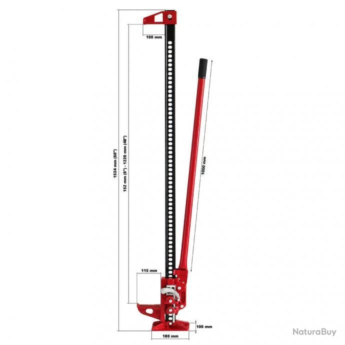 La longueur de 150 cm du cric à multi-usage est assez pratique, puisque vous pouvez le ranger dans chaque véhicule sans que cela encombre le coffre ou prenne trop de place.