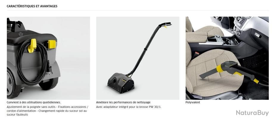 Les caractéristiques et avantages de l’Injecteur-extracteur 1250W 54 l/s Karcher Puzzi 10/2 Adv :
