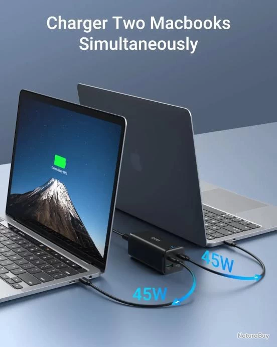 - ?[Chargeur Secteur USB-C 100W] Chargez votre MacBook Pro 16 » de 0% à 100% en seulement 1.9 heure sous une vitesse de charge maximal 100W; De plus, vous pouvez charger simultanément deux MacBooks à la vitesse de charge 45W.