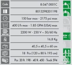 Nettoyeur Haute Pression à Eau Froide 1900 W 140 Bar Débit 450 L/h Avec Accessoires LVR3 140 Lavor