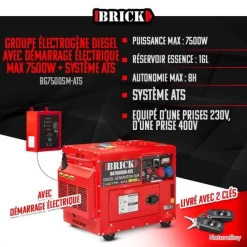 Groupe électrogène Essence 7,5kW 230V – Démarrage électrique MW-Tools BG75E