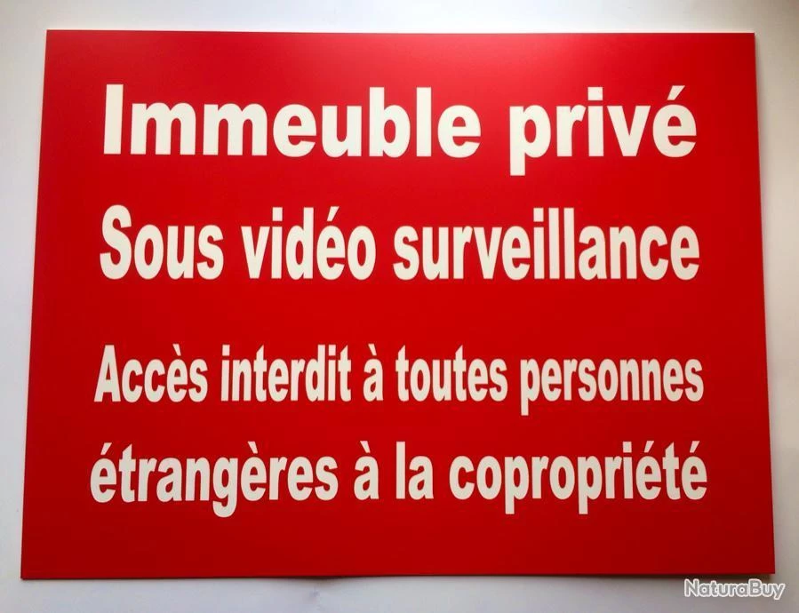 panneau matière ABS fond rouge texte blanc (pvc traité anti uv pour usage extérieur) 1,6 mm d’épaisseur gravure véritable inaltérable dans le temps,