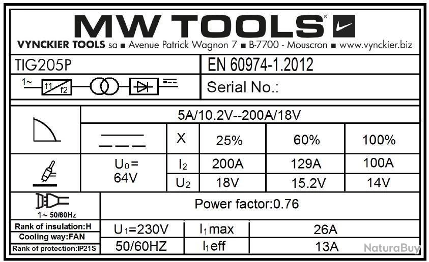 Poste à Souder Inverter TIG DC Pulse 200 A + Accessoires MW-Tools TIG205P