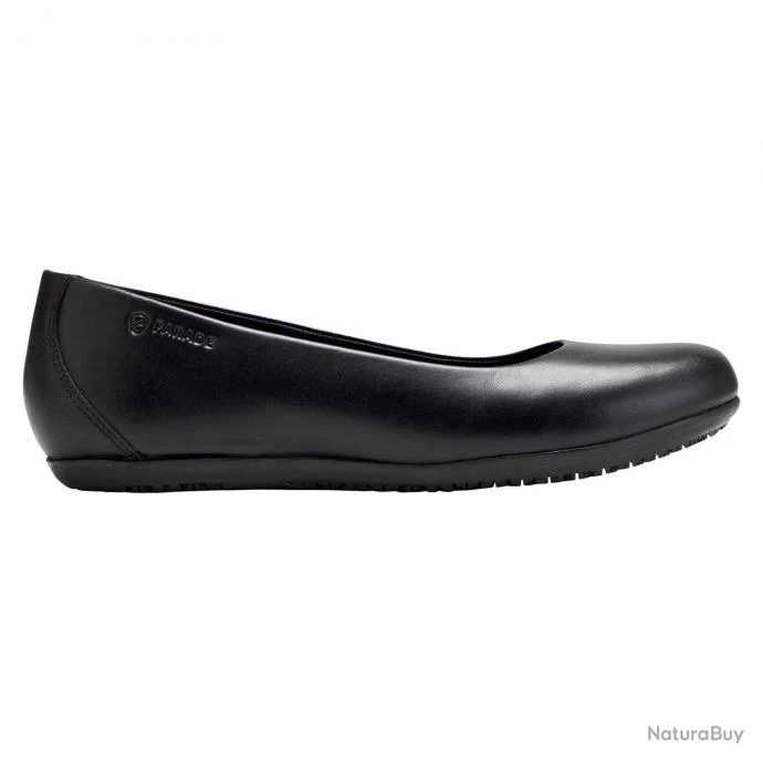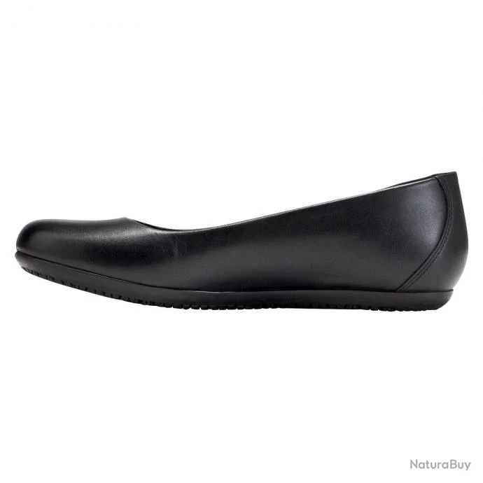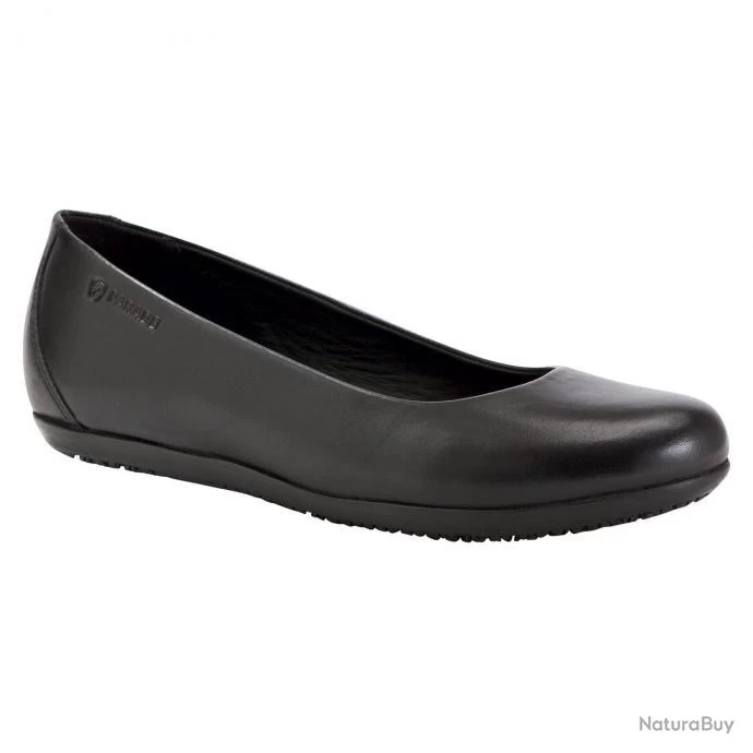 Des chaussures de travail, type ballerines, en cuir de vachette pleine fleur; avec doublure cuir et semelle antiglisse.